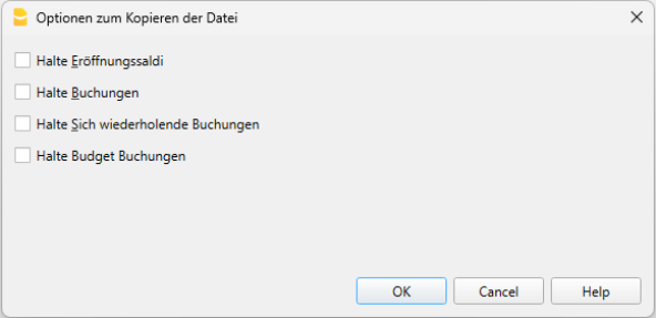 Im angezeigten Dialogfenster wählen Sie aus, welche Daten beibehalten werden sollen. Wenn keine der drei Optionen ausgewählt wird, erstellt das Programm eine Datei, in der nur der Kontenplan erhalten bleibt.