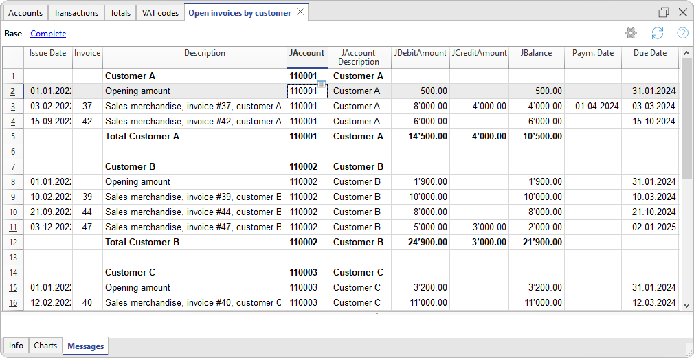 Erhalten Sie vollständige Informationen über Lieferanten und Kunden und behalten die Zahlungen und Einnahmen im Blick.