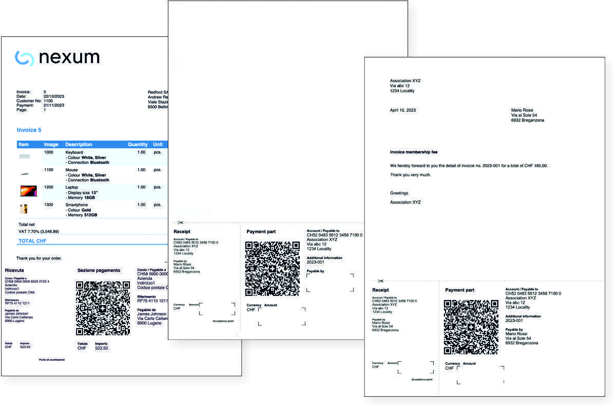 Mit einem Befehl werden Ihre Buchungen zu professionellen Rechnungen, die bereit sind, gedruckt oder per E-Mail an Ihre Kunden gesendet zu werden.