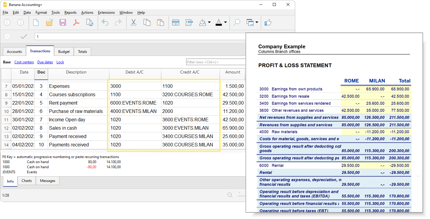 Kostenstellen und Segmente von Banana Buchhaltung Plus ermöglichen es Ihnen, Details zu Projekten, Veranstaltungen, Events, Baustellen, Partnern und anderen spezifischen Aktivitäten zu sehen oder Kosten und Einnahmen nach Einheiten, Abteilungen oder Niederlassungen zu markieren.