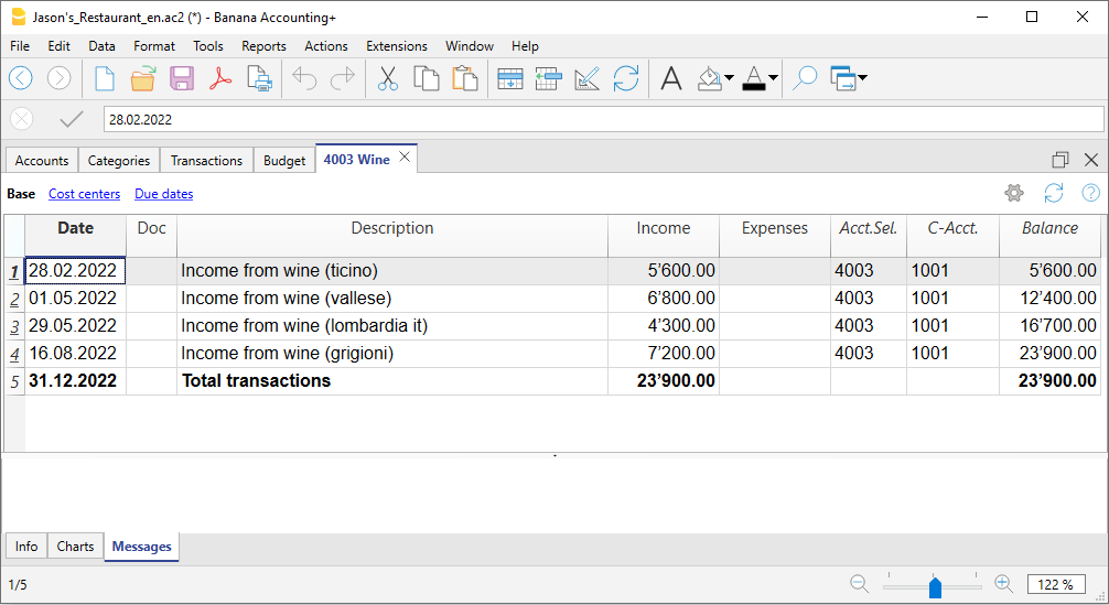 Esta operación debe ser ejecutada sólo la primera vez que se utilice Banana Accounting, ya que a partir de ahí, cada fin de año, al crear un nuevo año (menú Cuenta2, comando Crear nuevo año), el saldo inicial será transferido automáticamente.
