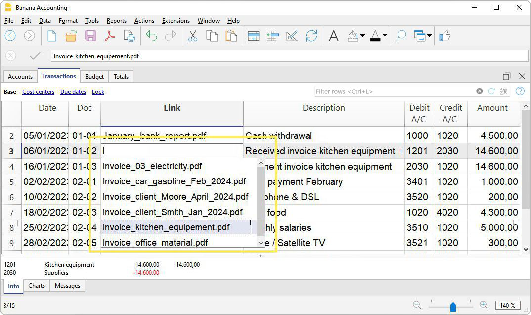 Puoi inserire nelle registrazioni i documenti digitali (fatture, ricevute, contratti).
