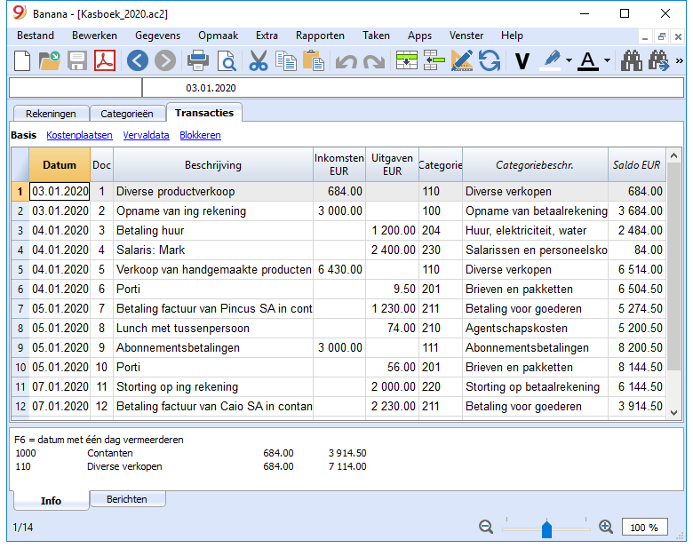 - de categorie uit de Categorieëntabel die bij de inkomsten of uitgaven hoort