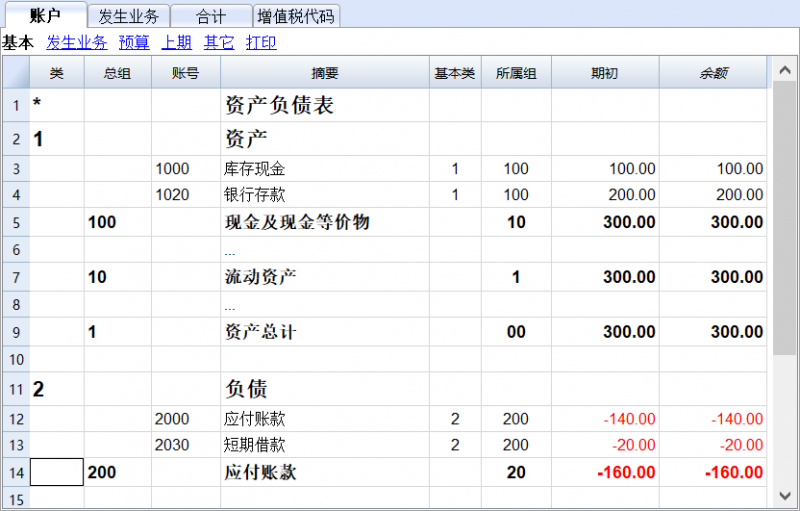 计算机表示的借方金额为正数,贷方金额为负数,因此我们应当在最终组中把所有账号和总组进行总计,如果计算正确,则应该将金额归零。