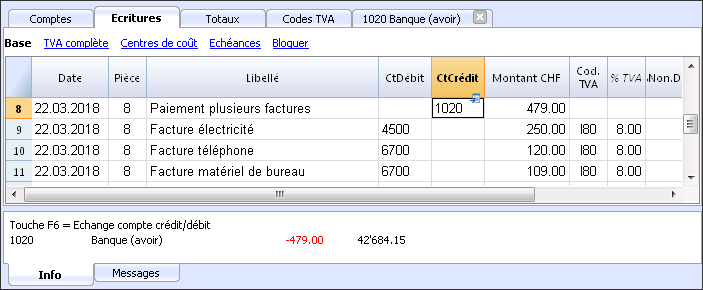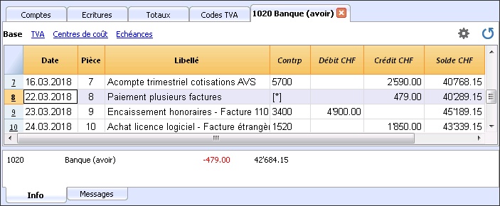 - La première ligne d'écriture est considérée comme la contrepartie commune des écritures suivantes.