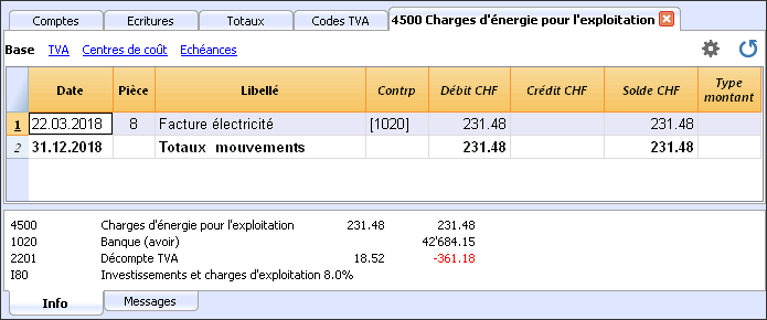 Dans la fiche de compte, on ne peut pas modifier des données . Avec un double clic sur le numéro de ligne, le programme passe à la ligne correspondante du tableu Écritures ou Budget.