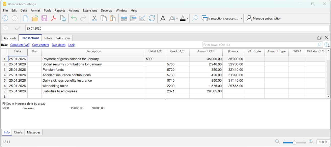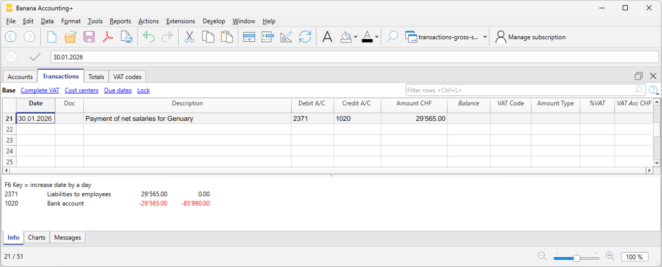 Se i salari sono stati registrati nel momento in cui sono stati rilevati e il pagamento avviene successivamente, la registrazione del pagamento avviene come segue:
