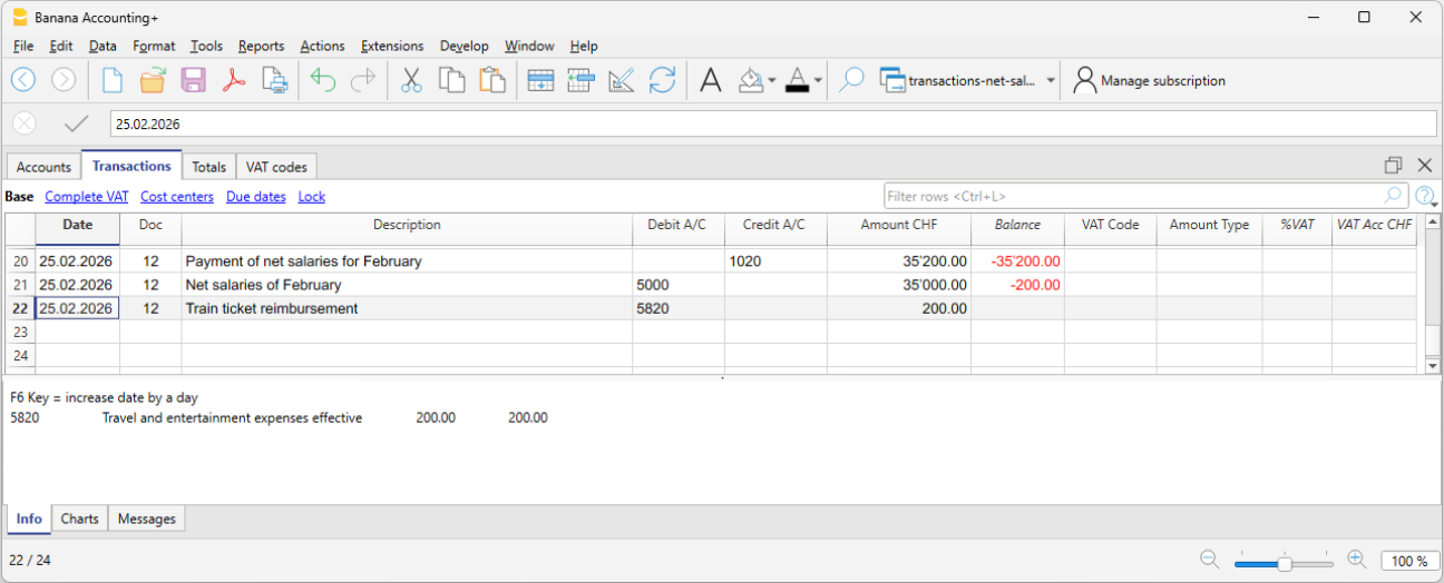 • Nella colonna Importo, l'importo del rimborso spese CHF 200