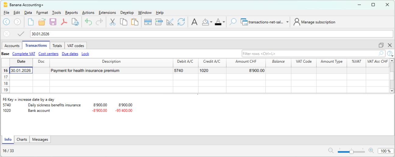 Quando si pagano i contributi assicurativi, per esempio LAINF o LAINF complementare, si registra il pagamento verso l'ente assicurativo.